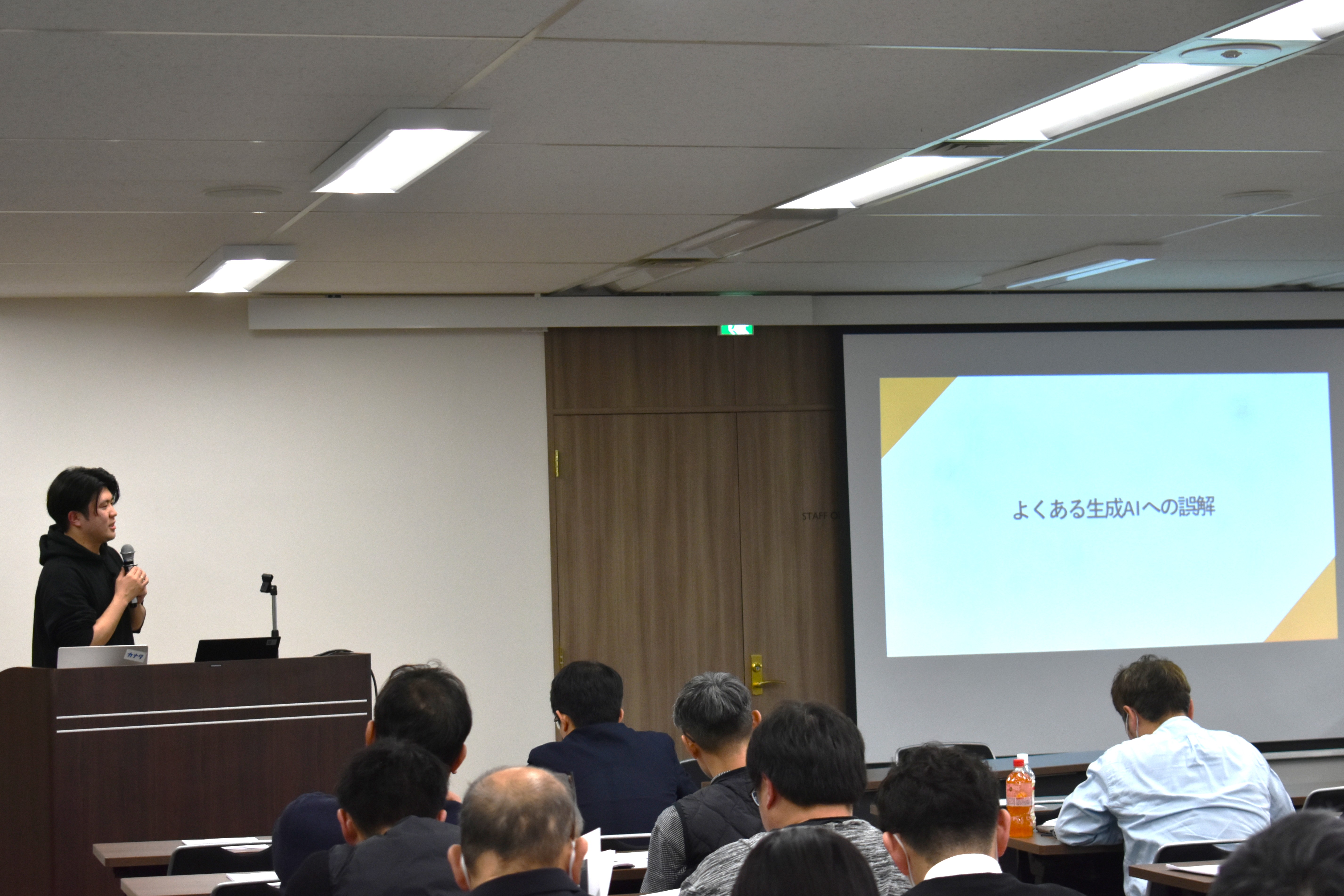 AIに下書きを任せ、人間が最後にチェック(ファクトチェック)するという向き合い方が重要であると説きました。