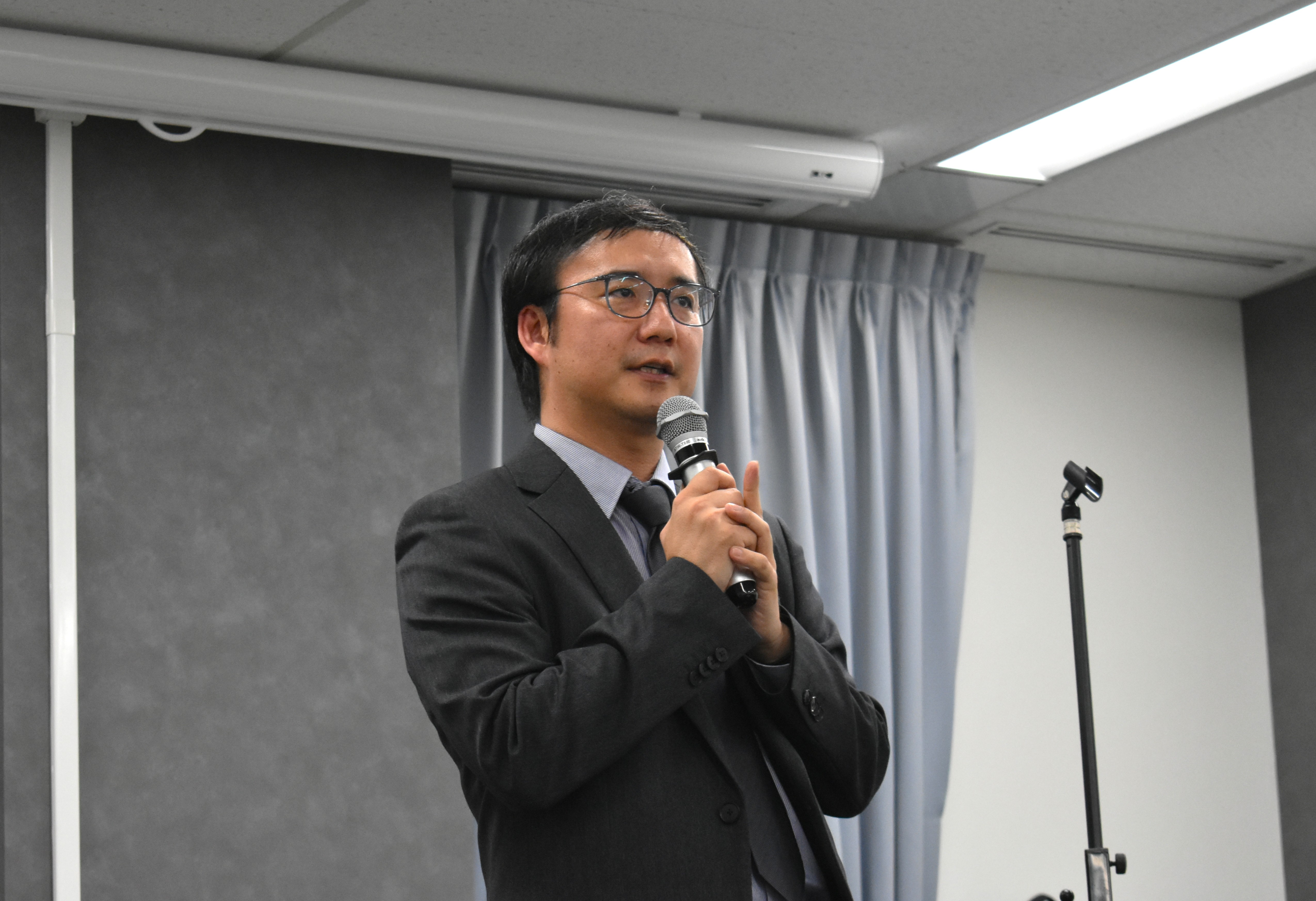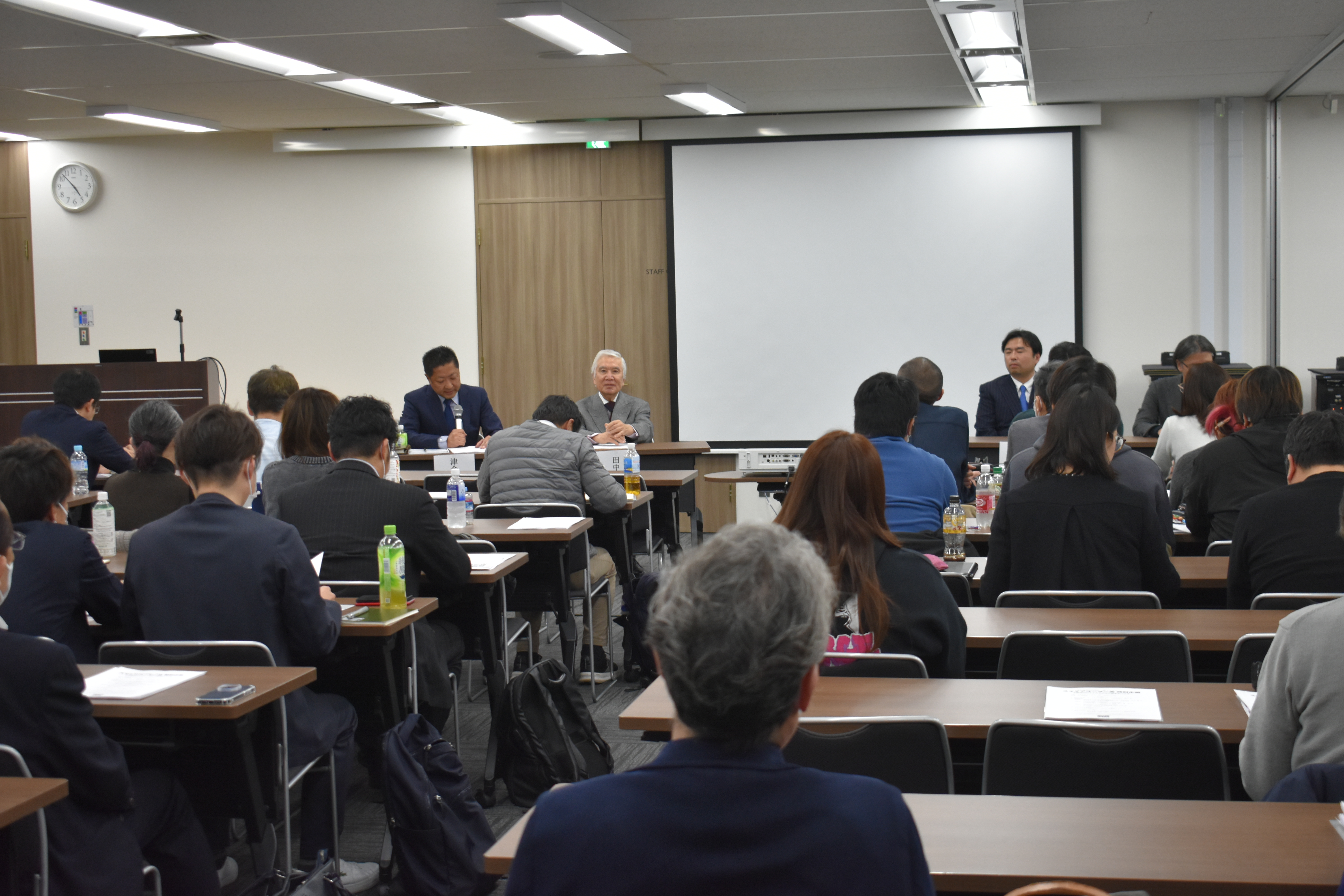 講演の合間の休憩時間には名刺交換会が行われ、参加者同士が積極的に挨拶を交わす姿が見られました。